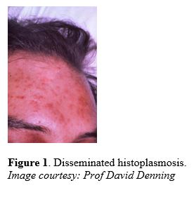 Although reviews show disseminated histoplasmosis (DH) is commonly complicated with haemophagocytic lymphohistiocytosis (HLH), few studies haves described the clinical and laboratory features associated with HLH in patients with DH. Mandrell et al retrospectively analysed 110 participants with DH in the USA and reported an HLH prevalence of 20%. The HLH cohort had higher levels of serum ferritin, urine Histoplasma antigen, and serum 1,3 beta-D-glucan (BDG) compared with DH without HLH.
